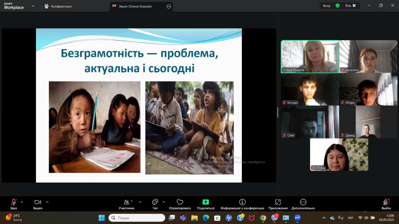 З цієї нагоди в нашому ліцеї ми провели низку заходів для учнів 7-11 класів. Класні керівники (Ковалів О.В., Семенець С.І.) провели онлайн-бесіди з учнями, де обговорили важливість грамотності в сучасному світі. А учні 8-го класу разом зі своїм класним керівником Зінов'євою М.С. створили креативну онлайн-стіннівку, показавши, як грамотність допомагає нам розуміти світ.