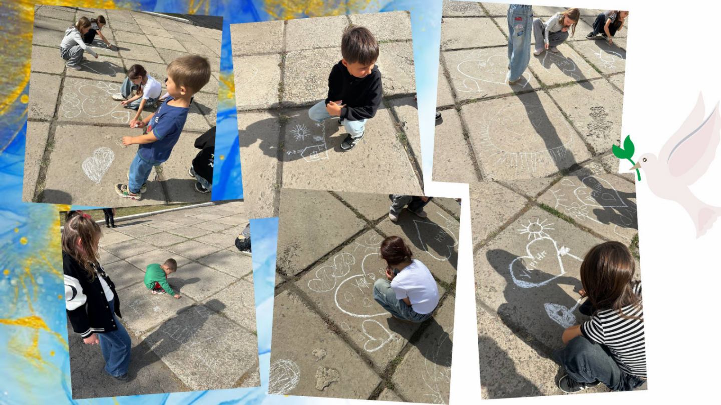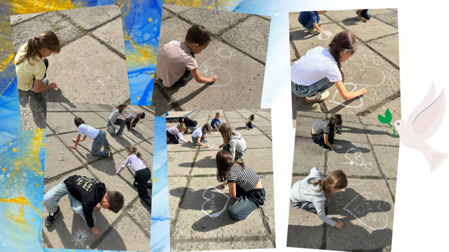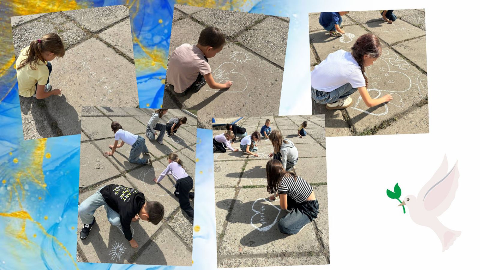 Наші учні ліцею та наймолодші вихованці дошкільного підрозділу також долучилися до цієї важливої події, взявши участь у конкурсі малюнку на асфальті під назвою "Мирне майбутнє".