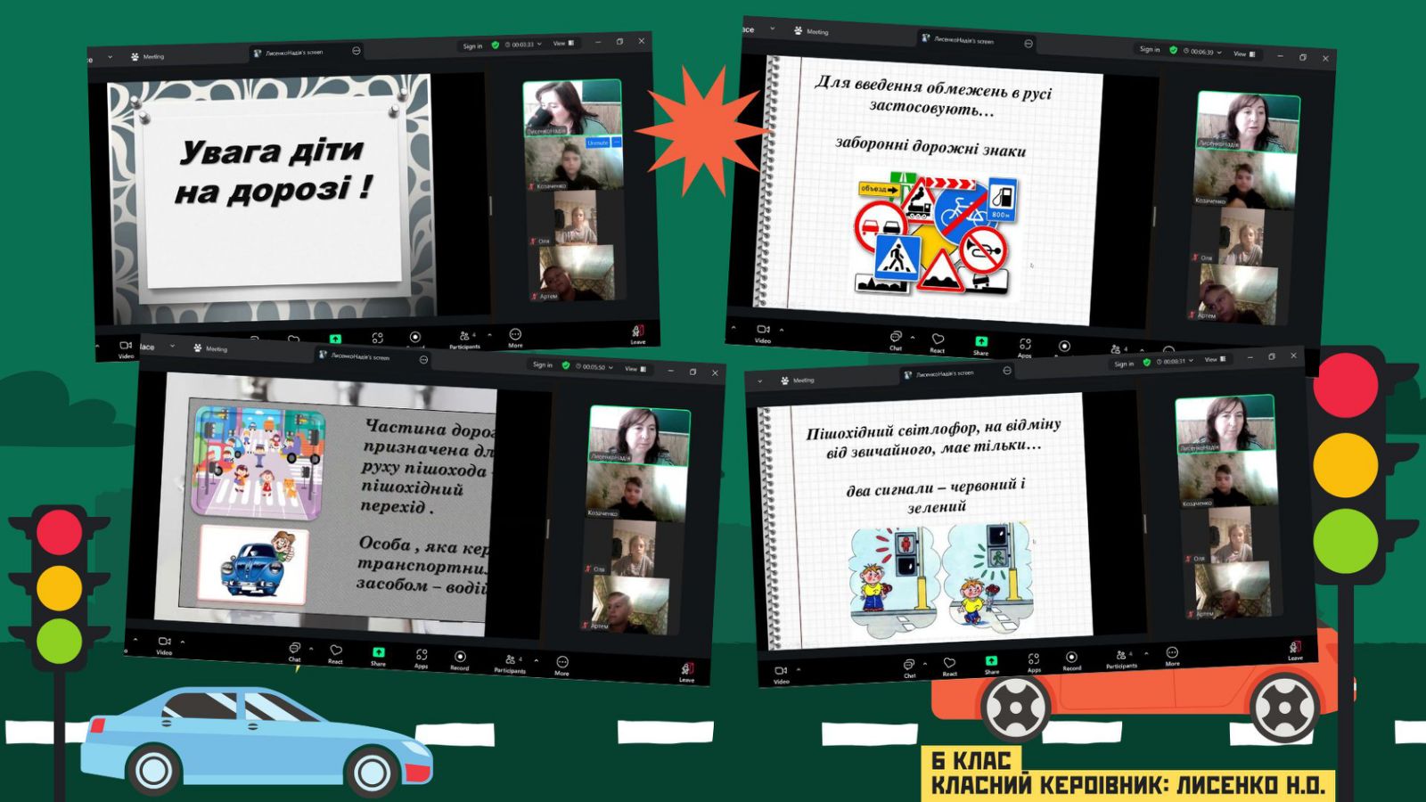 З учнями початкової та середньої школи, класні керівники провели години спілкування, присвячені основам дорожньої грамотності.Щоб закріпити отримані знання в ігровій формі, учні 7-го класу із захопленням проходили вікторину "Дорожні знаки та розмітка" на платформі Wordwall, де кожен міг перевірити свої знання та дізнатися щось нове.