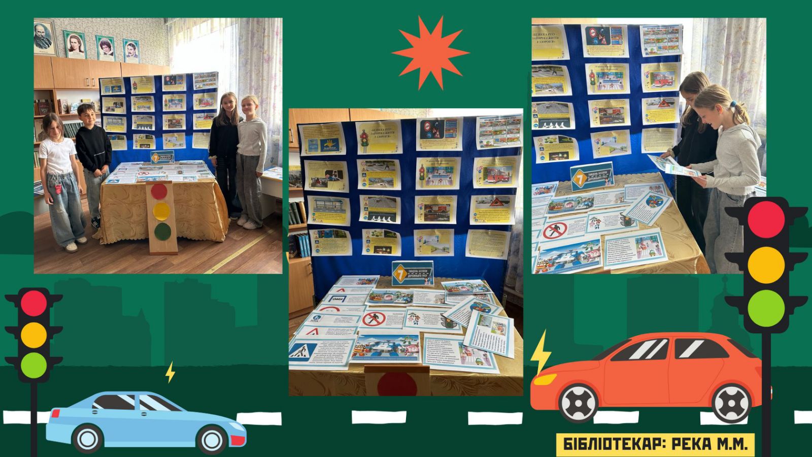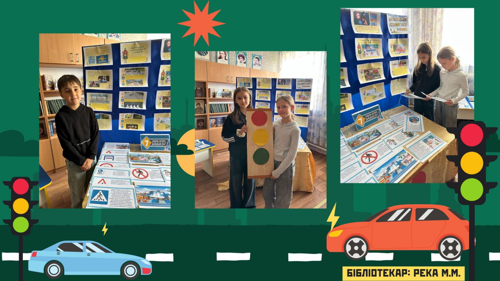 Додатково в шкільній бібліотеці було організовано тематичну виставку. На ній були представлені книжки, інформаційні буклети та малюнки, що візуально знайомили учнів із правилами дорожнього руху. Це дозволило зробити процес навчання більш цікавим та доступним для кожного.