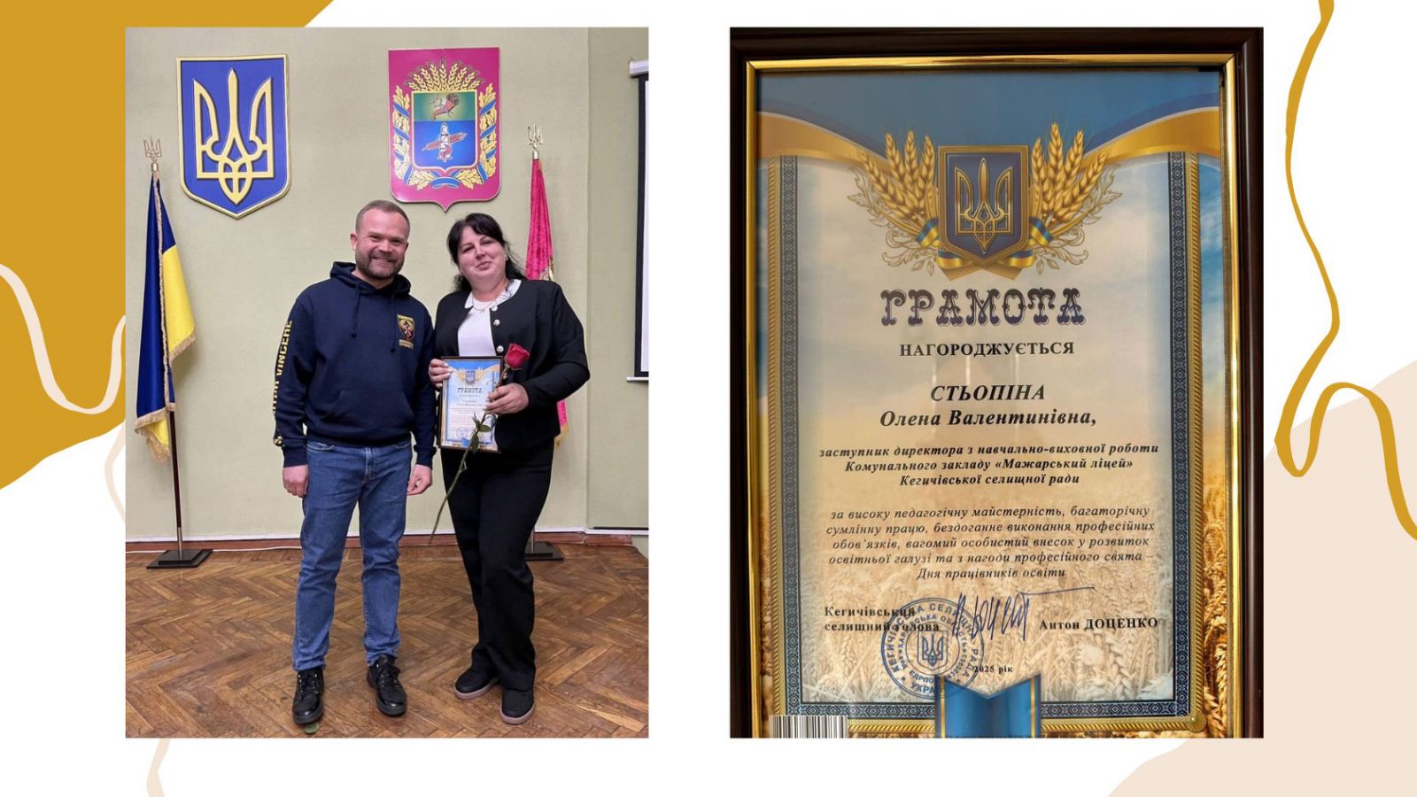 Селищний голова Антон ДОЦЕНКО привітав освітян із професійним святом, подякувавши за їхню нелегку, але надзвичайно важливу працю, та вручив почесні нагороди.