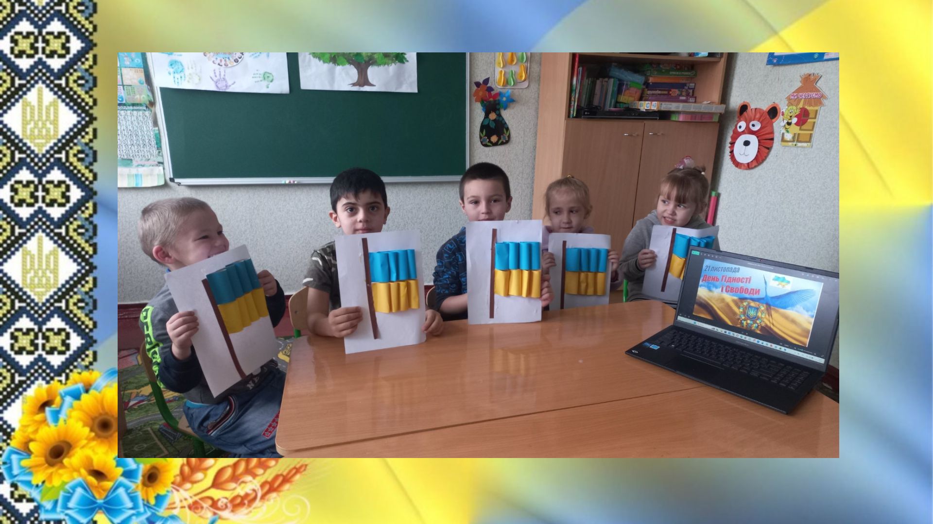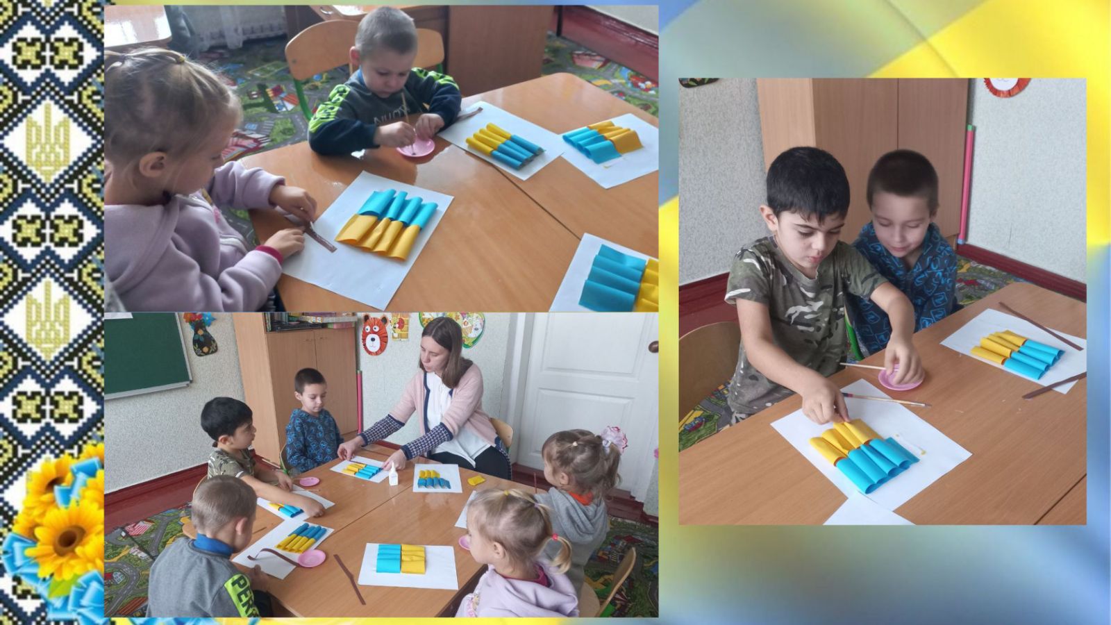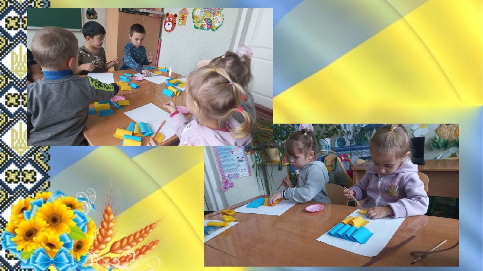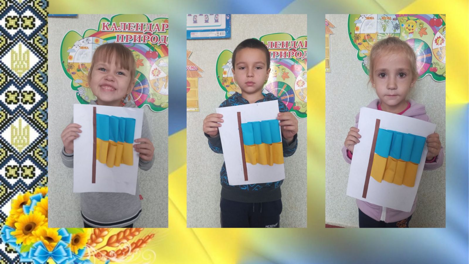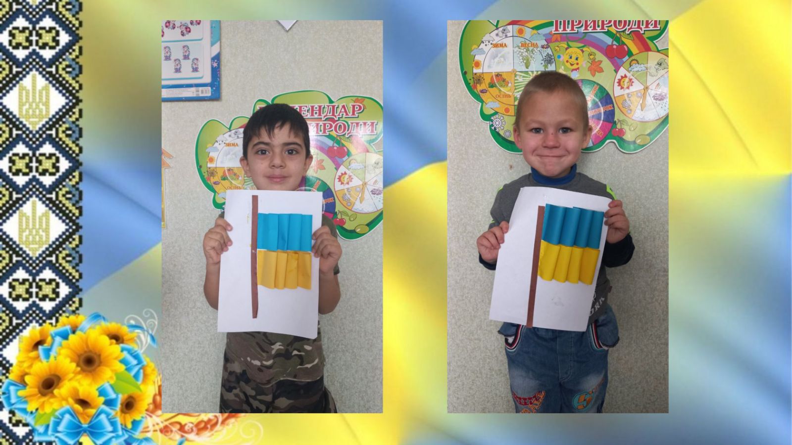 Особливо зворушливою стала творча робота: діти старанно створювали аплікації українських прапорців на аркушах. У процесі цієї роботи дошкільнята закріпили кольори державного стягу, дізналися, що означають синій і жовтий, і зрозуміли, що ці кольори символізують нашу країну, незалежність та свободу.